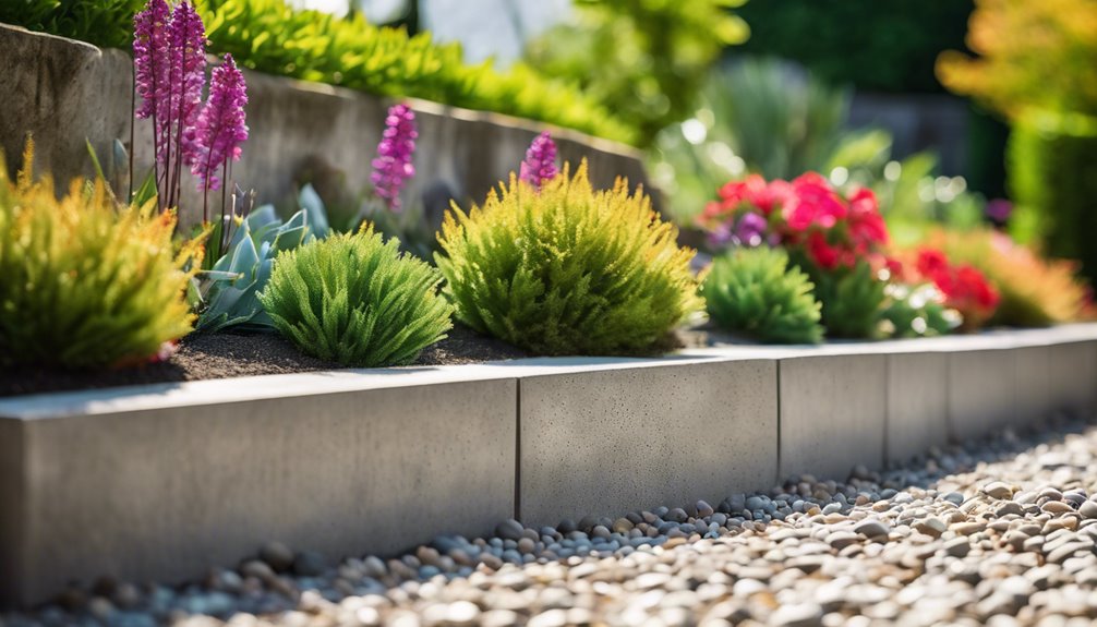 Dla obrzeży ogrodowych użyj standardowego cementu portlandzkiego, aby zapewnić trwałość, lub rozważ beton zbrojony dla dużych obciążeń. Wybierz mieszankę o co najmniej 25 MPa wytrzymałości na ściskanie, łącząc drobny żwir i piasek w proporcji 1:2:4 dla stabilności. Odpowiednie przygotowanie terenu jest kluczowe; wykop dół o głębokości 15-40 cm i stwórz żwirową podstawę dla odprowadzania wody. Zwróć uwagę na pionowe ustawienie podczas instalacji, aby zapewnić stabilność. Nie zapominaj o estetyce; dekoracyjne opcje mogą naśladować kamień. Takie podejście zapewni Ci sukces w projekcie ogrodu, a więcej wskazówek czeka, aby udoskonalić Twoje techniki obrzeży.