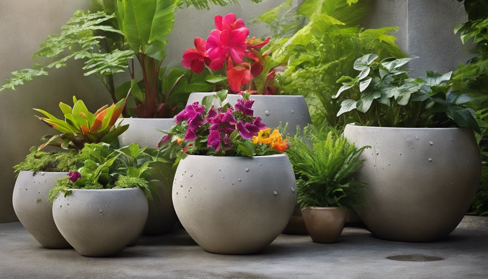 Możesz wybierać unikalne kształty i tekstury dla swoich donic, czyniąc je punktami centralnymi, które łączą funkcjonalność z wyrazem artystycznym. Aby maksymalizować zdrowie roślin, pamiętaj o dodaniu otworów drenażowych w swoich donicach betonowych. Zapobiega to gromadzeniu się wody i wspiera zdrowe systemy korzeniowe.